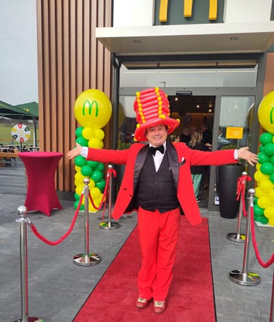 Ob Tag der offenen Tür, Geschäftseröffnung, Hochzeit oder Promotion – Zappos kunstvolle Ballonfiguren sorgen für staunende Besucherinnen und Besucher jeden Alters. In seinem eleganten Kostüm verwandelt er einfache Luftballons in lebendige Tiere und fantasievolle Gestalten, die zum Anfassen nah sind.